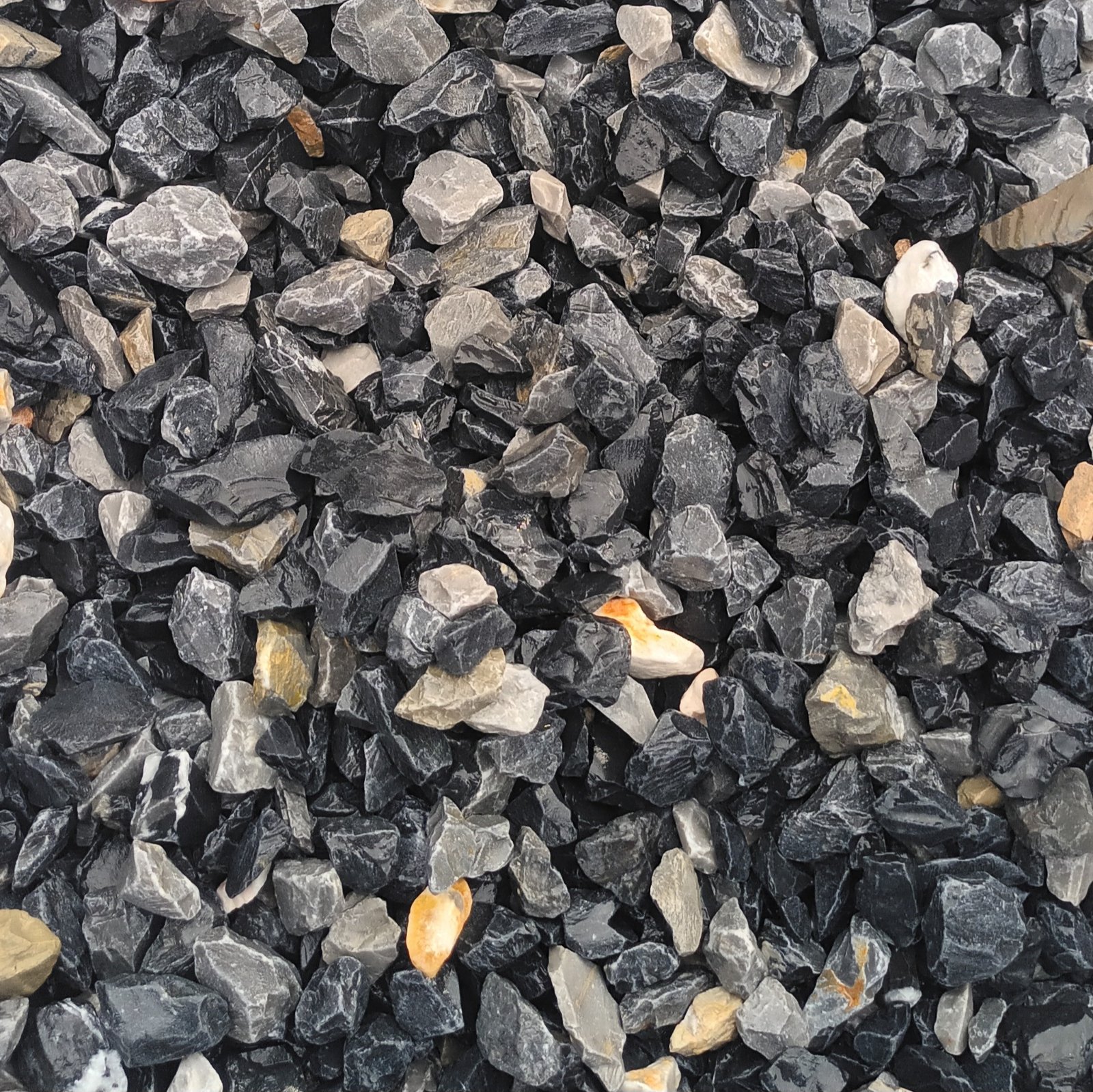 Οι μαύρες ψηφίδες παράγονται από μάρμαρο (μαρμαροψηφίδες) κατόπιν θραύσεως, σε μικρότερα τεμάχια με ειδικούς σπαστήρες. Στην συνέχεια τα προιόντα θραύσεως περνούν από διαλογητήρα και γίνονται διάφορες διαλογές ανάλογα με το μέγεθός τους. Η συσκευασία τους είναι συνήθως σε μεγάλο σάκο Big Bag ή σε νάυλον σακιά των 20Kgr.