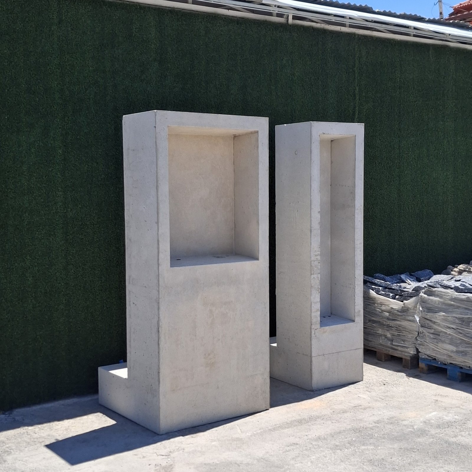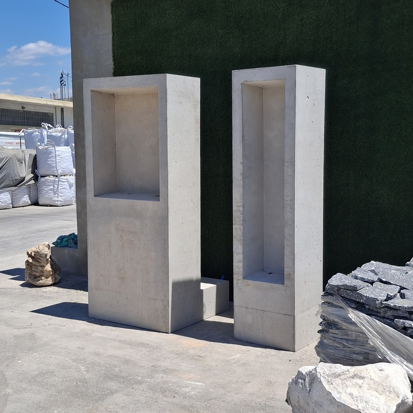 Τσιμεντένιες κολώνες-στήλες (pillars) ΔΕΗ που προορίζονται για την τοποθέτηση των ρολογιών του ηλεκτρικού ρεύματος οικιακής ή βιομηχανικής χρήσης. Έχετε επιλογή μεταξύ μονής ή διπλής κολώνας με εσωτερικό άνοιγμα 0,40 m (μόνο για ένα ρολόι) ή 0,80m (διπλόγια δύο ρολόγια) αντίστοιχα.